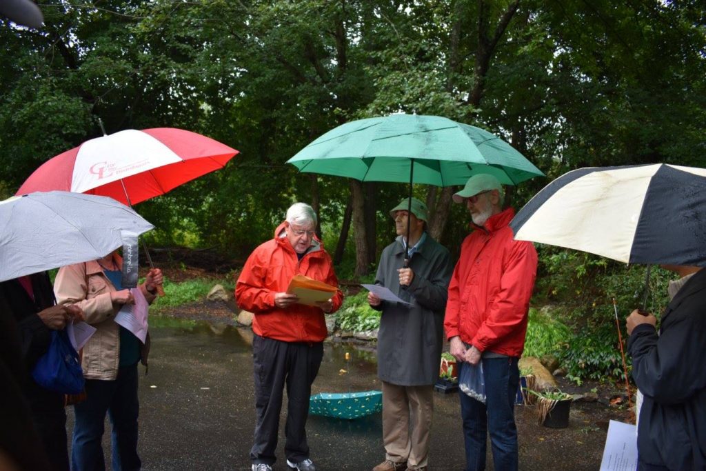 Above, members cast off their sins at a rainy Taschlich ceremony.